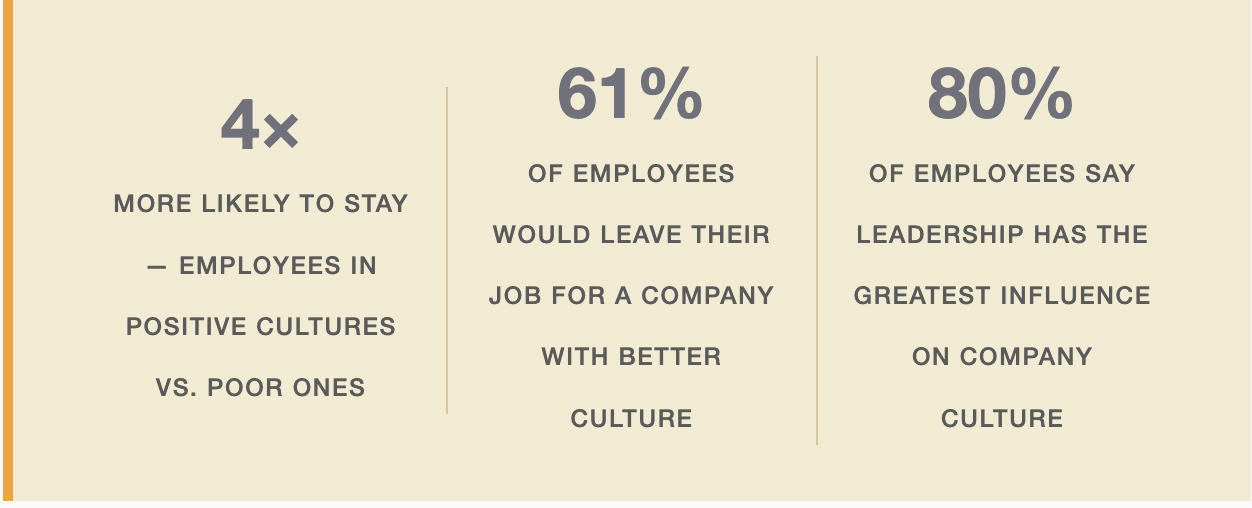 The message is clear: culture isn’t a peripheral concern. It’s a primary driver of the outcomes leaders care most about — retention, performance, engagement, and organizational resilience. When it’s left to develop without leadership input, the results are rarely what anyone would have chosen.